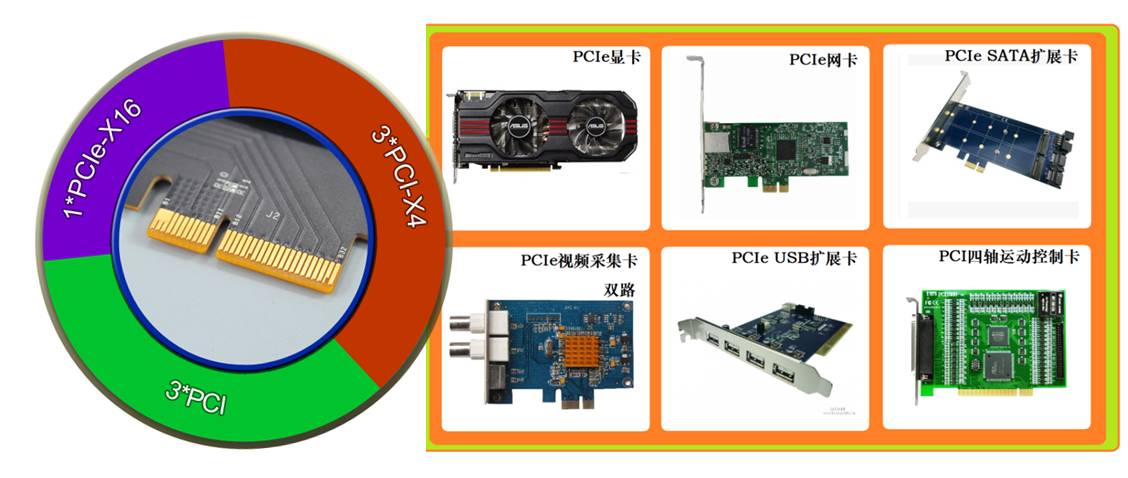 可擴(kuò)展顯卡、網(wǎng)卡、USB卡,視頻采集卡、運(yùn)動(dòng)控制卡等。