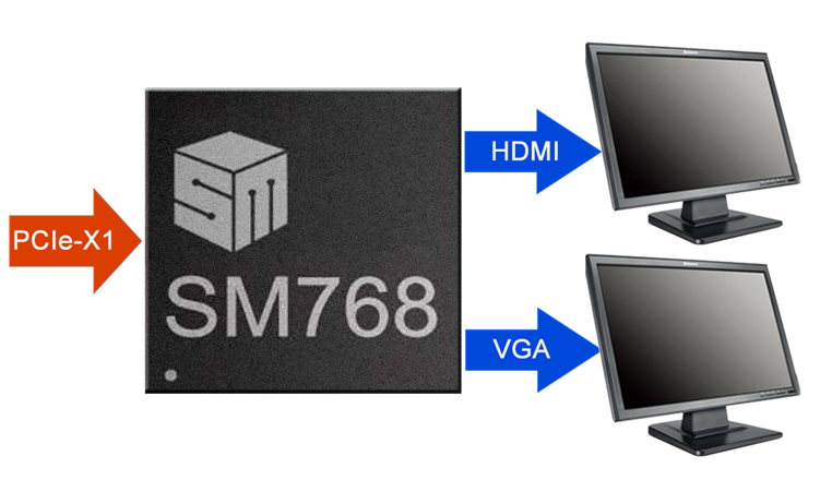 通過搭載SM768 2D顯示芯片,使得FT-2000/4平臺具備基礎(chǔ)圖像顯示功能,可通過HDMI/VGA等接口連接顯示器,為辦公、網(wǎng)頁瀏覽、高清視頻播放提供窗口;